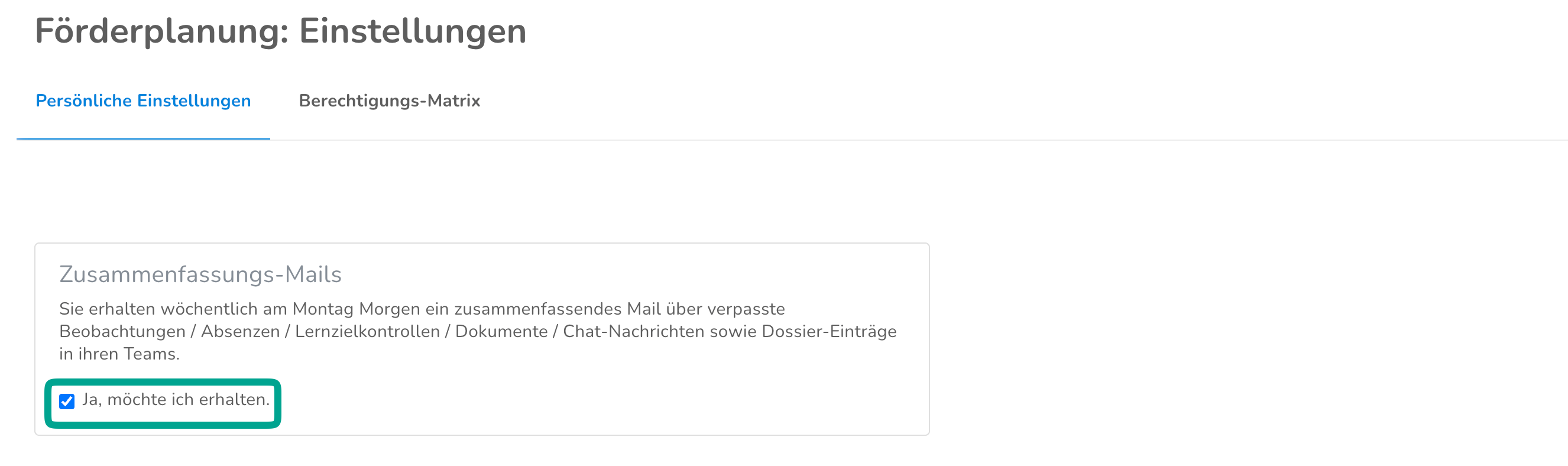 Die Einstellungen für die E-Mail-Benachrichtigungen der Förderplanung können global für alle Schüler:innen oder für einzelne Schüler:innen vorgenommen werden.