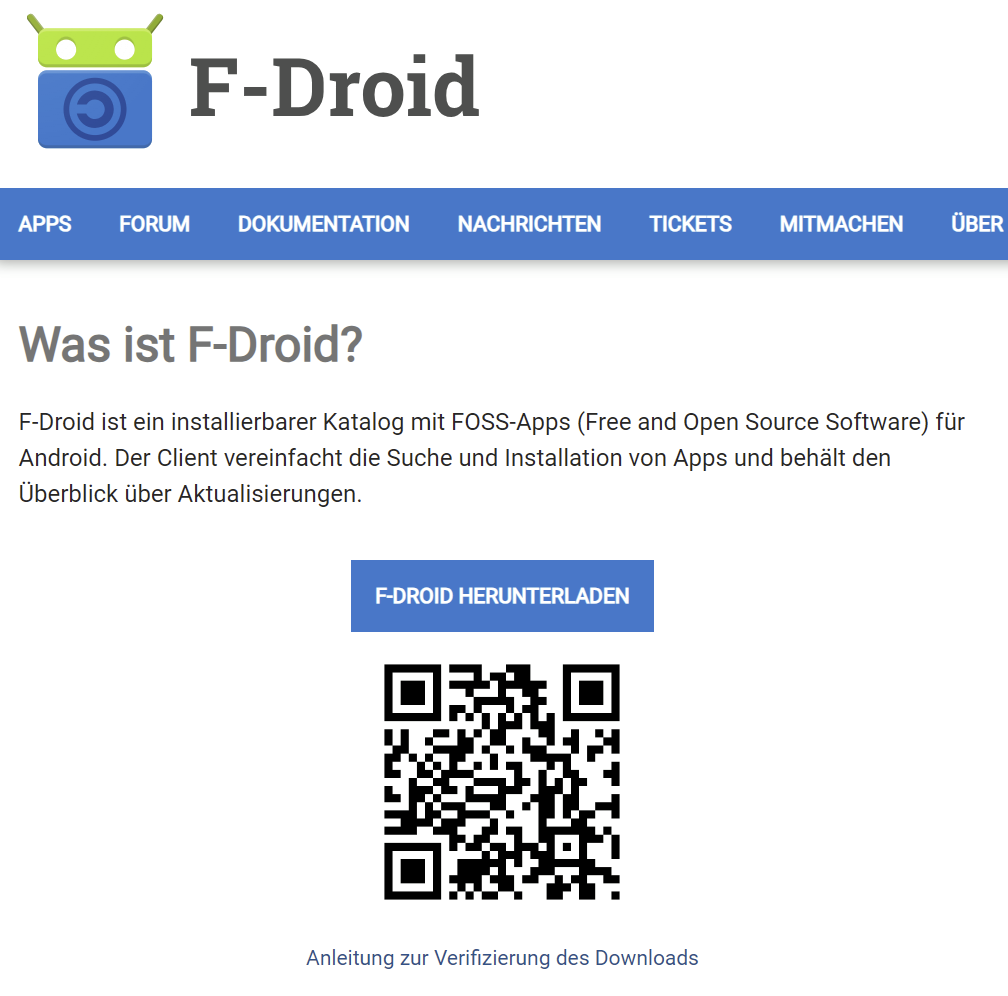 Installiere die F-Droid-App, indem du den QR-Code auf der Website scannst und das Programm herunterlädst. Nach dem Download findet eine Paketaktualisierung statt. Falls sich die App danach nicht öffnet, kannst du sie über die App-Verwaltung starten.
