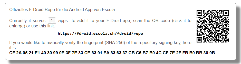 Oder gib die URL des Repositories von Hand ein: https://fdroid.escola.ch/fdroid/repo/